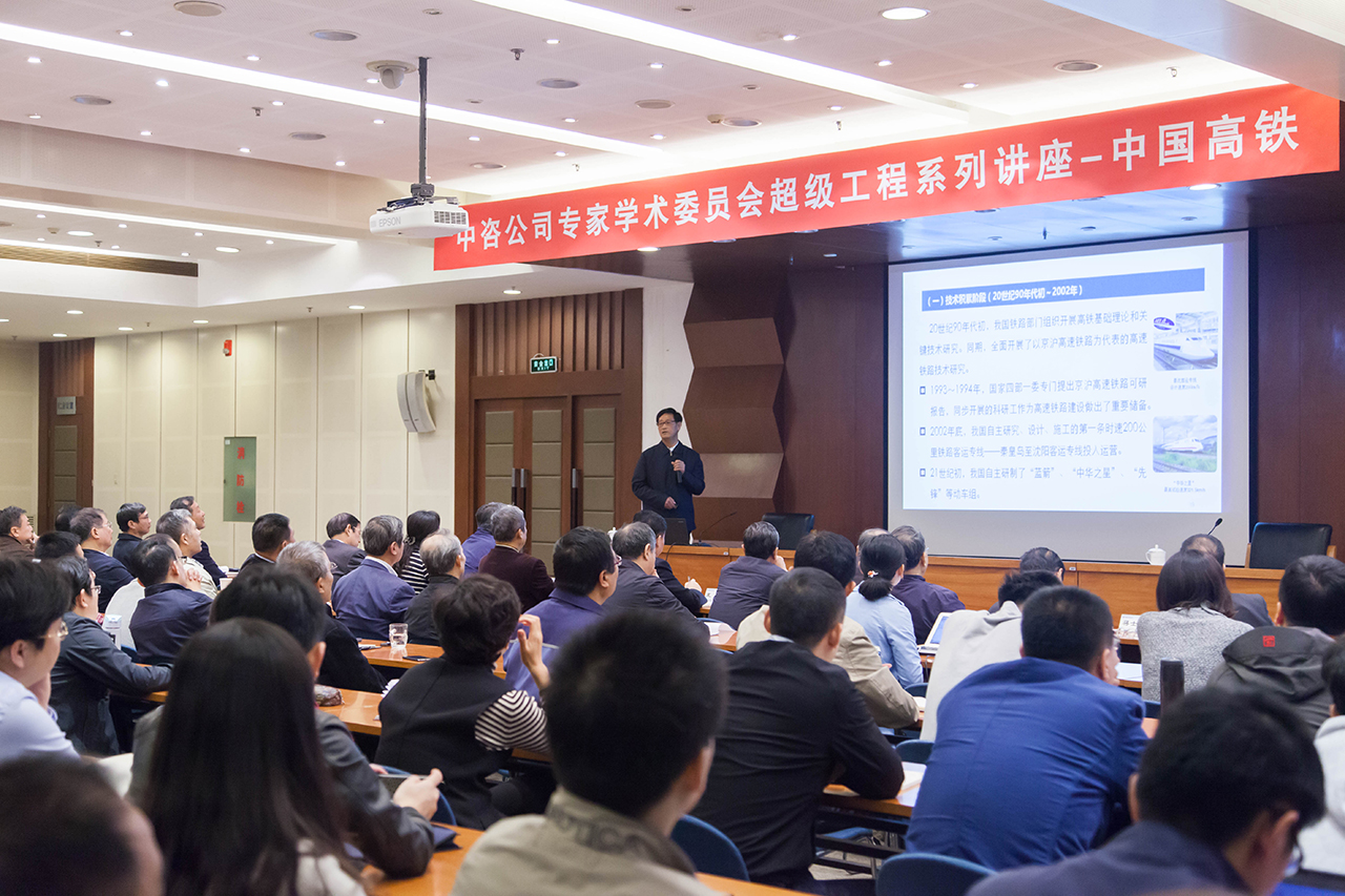 2017年10月16日上午,公司專家學術委員會舉辦第三期中國超級工程系列講座,邀請原鐵道部副部長盧春房作了題為《中國高速鐵路創新與發展》的學術講座,并進行了現場互動交流。 公司領導、專家學術委員會領導、部分資深專家和交通、高技術專家組專家、公司各部門和所屬企業職工200余人參加。 學術講座現場 盧春房同志作學術講座 | |||||