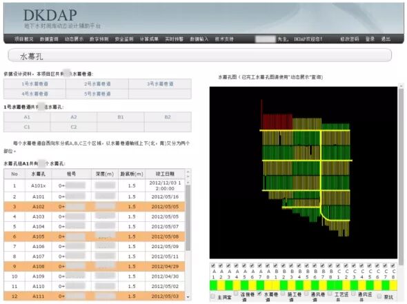 【摘要】地下水封儲庫數字平臺建設的核心理念是信息即時化、數據生命化、反饋聯動化,建立全生命周期數字平臺具有十分重要意義。數字平臺架構包括底層工程數據庫、中層WEB服務器和通訊服務器、上層架構為網絡前端界面開發。此外,還簡述了國內某大型地下水封儲庫全生命周期數字平臺在工程中的實際應用情況,旨在為地下水封儲庫數字平臺建設提供參考。 關鍵詞:地下水封儲庫;全生命周期;數字平臺 地下水封儲庫通常是在花崗巖內開挖密集洞室群來儲存油品或液態氣體等能源,并利用地下水及人工水幕系統來防止儲物逃逸[1],因此對工程地質及水文地質條件要求極高。在地下水封儲庫建設全生命周期內,能夠將工程信息及時準確傳遞給各參與方,使其充分協調快速做出響應部署是至關重要的。鑒于地下水封儲庫工程的特殊性,能將有限的信息及數據得到合理的最大化利用,為工程提供輔助決策依據,也對保障工程順利建設及運營具有重要意義。 01 地下水封儲庫的原理及其特征 地下水封儲庫的原理如圖 1所示。 圖1 地下水封儲庫運行原理圖 與傳統的水電站地下廠房或交通隧道等地下工程相比,地下水封儲庫具有如下特點: (1)要求盡可能少的布置勘探孔以避免破壞水封系統,故前期勘探精度并不如其他地下工程精確[2]; (2)為保證地下水水位,要求保水施工,不能對巖體裂隙水有較大擾動[3]; (3)洞室密集、施工工作面多、工種復雜、施工進度快、工程參與方多,對整體快速協調及調度要求高[4]; (4)儲庫運行期只有管道進出儲物,其余進出口全部封閉,庫內一旦出現問題不具備維護條件,所以對洞室及圍巖的長期安全性要求極為嚴格[5]。 02 地下水封儲庫全生命周期數據平臺建設的核心理念 目前我國地下水封儲庫的設計建設總體還處于探索階段,由于地下水封儲庫不同于傳統的地下工程,具有其特殊性,且由于國外技術封鎖,核心經驗難以借鑒,給地下水封儲庫的建設帶來了阻力。根據地下水封儲庫的特點,在工程勘探、設計、施工、運營的全生命周期內,通過數字平臺將各參與方有效聯結,為儲庫的建設提供決策支持是至關重要的。 數據平臺需要遵循的核心理念,可以概括為信息即時化、數據生命化、反饋聯動化。 2.1 信息即時化 信息即時化是要保證工程信息能在第一時間被工作人員接收并利用。在工程項目前期主要涉及政策文件及時下達、設計、咨詢方案及時更新等;項目施工期主要涉及勘探信息快速發布、施工情況時實展示、業主要求動態調整、監理意見準確反饋等;項目運營期主要涉及運行監測數據即時接收、管理調控指令精準布置等。 2.2 數據生命化 數據生命化是指要將原始數據進行高度的提煉和抽象,形成工程關鍵節點元數據,然后使數據在全生命周期的各個環節能夠順暢流轉、合理應用,并且能夠衍生出新的數據、新的應用、新的含義,在流轉過程中能夠賦予數據更多的價值及意義,從而對工程決策產生積極的影響。 2.3 反饋聯動化 反饋聯動化是指將各參與方的信息融合為一個整體,做到應有數據共享,同時根據工程級聯關系建立數據傳遞鏈,一方有數據更新時,與其相關的各方都能在第一時間收到信息推送及需要其進行的操作指示,提高各參與方協同作戰的能力。 03 全生命周期數字平臺的基本架構 地下水封儲庫全生命周期數字平臺可以按照自底向上的方法,分別對底層、中層和上層進行基本架構設計。 3.1 底層架構為工程數據庫 工程數據庫中主要存儲的內容為工程全生命周期內經過高度提煉的元數據,包括用戶數據、文件索引數據、工程設計數據、工程建設數據、工程管理數據、工程運營數據等。用戶數據用來記錄工程各協作單位用戶的用戶名、密碼、權限等級等,需要設計專門的加密方案對數據進行加密及解密;文件索引數據用來建立工程數據庫與文件數據庫之間文本數據的對接及同步;工程設計數據主要涉及咨詢與設計人員進行工程規劃、設計參數、關鍵節點數據的定義及存儲;工程建設數據主要用來存儲工程建設過程中的勘探數據、施工數據、工程進度等關鍵數據;工程管理數據主要用來存儲工程管理過程中機械設備管理、人員管理、財務管理等數據;工程運營數據主要用來記錄工程運營過程中關鍵部位、關鍵人員、關鍵環節的動態數據及運營期的效果評價指標、后評價參數等。 入庫的數據,一是要保證數據質量,需要對入庫的數據格式、正確性等方面進行全面治理,保證入庫的數據都是健康有用的;二是要高度提煉及優化數據結構,根據數據的不同類型合理設計存儲方式,避免數據冗余。 3.2 中層架構為WEB服務器與通訊服務器 WEB服務器中需要配置保證網絡正常運行的各種服務,除此之外,最重要的是集中布置全生命周期數字平臺的功能模塊集。功能模塊集主要包括對入庫數據進行治理的數據治理工具集以及使數據生命化的數據模塊工具集。數據治理工具集主要包括數據糾錯模塊、數據去重模塊、數據格式化模塊、數據存取模塊等,實現的功能是要嚴格保證入庫數據的質量及精度,作為數據后續衍生復用的基礎。數據模塊工具集主要包括數據處理、數據加工、數據融合、計算模型等模塊,其功能主要在數據庫中元數據的基礎上,挖掘數據內在聯系,派生新的數據,最后通過數據顯示、模型展示等方式傳遞給前端用