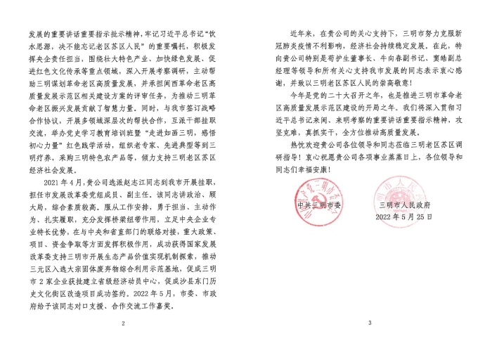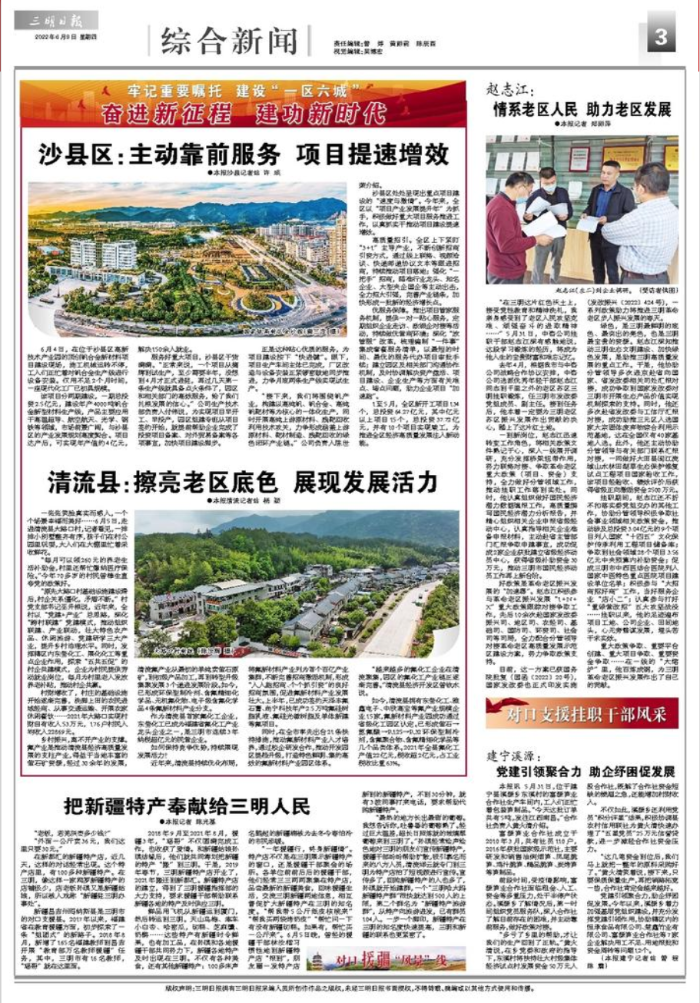 這里有鮮美可口的沙縣小吃 這里有服裝精致考究的梅林戲 這里曾經(jīng)留下習近平總書記12次到訪的足跡 這里是:福建三明 習近平總書記長期關心三明發(fā)展、情系老區(qū)人民,在福建工作期間,先后11次到三明調研考察,作出了“青山綠水是無價之寶”“畫好山水畫”“不要忘記老區(qū)”等一系列重要指示。2021年3月,習近平總書記再次親臨三明考察指導,對三明老區(qū)蘇區(qū)發(fā)展特別是醫(yī)改、林改、鄉(xiāng)村振興、沙縣小吃等作出新的重要囑托。 中咨公司作為咨詢服務“國家隊”,深入貫徹落實習近平總書記重要指示精神,承擔了全國革命老區(qū)振興發(fā)展的一系列咨詢服務任務。在評估工作中,中咨公司深入調研三明市特色亮點,報送關于三明市統(tǒng)籌推進“五位一體”總體布局和協(xié)調推進“四個全面”戰(zhàn)略布局的調研報告。2020年公司領導牽頭,組織開展調查研究,形成上報政策研究報告,“三明實踐”被中宣部樹為重大典型。 中咨公司與三明“結緣”已深,去年開始互派優(yōu)秀年輕干部掛職交流。2021年4月,趙志江作為中咨公司選派的優(yōu)秀年輕干部赴三明市掛職鍛煉,任三明市發(fā)改委黨組成員、副主任。掛職期間,趙志江始終以合格共產黨員的標準要求自己,積極發(fā)揮模范帶頭作用,從央企到地方,迅速轉變工作角色,沉下心撲下身,積極謀劃,履職盡責,勇于擔當,高標準、高質量完成掛職各項任務。 三明日報報道趙志江事跡 激活紅色資源 深挖革命老區(qū)示范區(qū)新機遇 習近平總書記指出,福建是革命老區(qū),黨史事件多、紅色資源多、革命先輩多,開展黨史學習教育具有獨特優(yōu)勢。三明市既是革命老區(qū),也是全國率先開展精神文明建設的城市之一。如何發(fā)揮自身戰(zhàn)略咨詢專業(yè)優(yōu)勢,幫助革命老區(qū)換新顏,趙志江先從三明市參與革命老區(qū)高質量發(fā)展示范區(qū)建設入手。 趙志江積極參與革命老區(qū)振興發(fā)展“1+N+X”重大政策跟蹤對接,先后10余次赴國家發(fā)改委振興司、地區(qū)司等7個司局,對接閩西革命老區(qū)高質量發(fā)展示范區(qū)建設方案,爭取相關事項。目前該方案已獲國務院批復(國函﹝2022﹞20號),國家發(fā)改委正式印發(fā)實施(發(fā)改振興﹝2022﹞424號)。 為持續(xù)支持三明老區(qū)蘇區(qū)經(jīng)濟社會發(fā)展,開展多領域深層次幫扶合作,三明市發(fā)改委、林業(yè)局、交通局三位同志到中咨公司相關部門掛職交流,先后承擔三元區(qū)大宗固廢綜合利用產業(yè)發(fā)展研究、三明市生態(tài)產品價值實現(xiàn)機制研究等課題。 中咨公司與三明市合作,成功舉辦黨史學習教育培訓班暨“走進如畫三明,感悟初心力量”紅色踐學活動,組織老專家、先進典型等赴三明療養(yǎng),采購三明特色農產品,為三明革命老區(qū)高質量發(fā)展注入源源動力。 中咨公司在三明舉辦黨史學習教育專題培訓班開班現(xiàn)場 繪就生態(tài)畫卷 賦能三明綠色發(fā)展新藍圖 習近平總書記在武夷山國家公園智慧管理中心考察時指出,要堅持生態(tài)保護第一,統(tǒng)籌保護和發(fā)展,有序推進生態(tài)移民,適度發(fā)展生態(tài)旅游,實現(xiàn)生態(tài)保護、綠色發(fā)展、民生改善相統(tǒng)一。 趙志江多次赴省發(fā)改委與工信廳匯報對接,助推三元區(qū)成功入選大宗固體廢棄物綜合利用示范基地,全國僅有40家。充分利用在閩工作期間奠定的良好基礎,主動協(xié)助市發(fā)改委分管領導與有關部門匯報,做好大田縣閩江流域山水林田湖草生態(tài)保護修復試點工程項目驗收。該項目獲得省級正向激勵資金2500萬元。 此外,趙志江還積極做好體制機制創(chuàng)新案例編輯報送工作,案例“將樂縣打造‘綠水青山’贏得‘金山銀山’”獲得省機關黨工委組織的改革創(chuàng)新評選活動“優(yōu)秀獎”。 發(fā)揮智庫優(yōu)勢 探索老區(qū)高質量發(fā)展新路徑 在三明考察期間,習近平總書記詳細了解了沙縣小吃發(fā)展現(xiàn)狀和前景。他指出,鄉(xiāng)村要振興,因地制宜選擇富民產業(yè)是關鍵。 趙志江與專家團隊圍繞三明市產業(yè)升級、鄉(xiāng)村振興、綠色發(fā)展、民生提升等重點領域深入調研,謀劃沙縣小吃產業(yè)、綠色經(jīng)濟、氟新材料產業(yè)等重點專項發(fā)展思路,承擔閩西革命老區(qū)高質量發(fā)展示范區(qū)相關建設方案評審任務,以及包括三明在內的革命老區(qū)重點城市與發(fā)達地區(qū)部分城市對口合作方案的論證工作,為三明革命老區(qū)振興發(fā)展貢獻了“中咨方案”。 在招商方面, 趙志江積極投身“大招商 招好商”工作,多次陪同閩西南城市協(xié)作開發(fā)集團相關領導赴沙縣區(qū)東門歷史文化街區(qū)、小吃文化城、夏茂鎮(zhèn)等重點招商項目考察,組織召開座談會,促成沙縣東門歷史文化街區(qū)改造項目成功簽約,項目計劃總投資10億元。按照全力打好“八大攻堅戰(zhàn)役”工作部署,他積極參與全市重點項目專題調研和“一線兩推”工作,打好招商引資“組合拳”。 趙志江精心組織相關企業(yè)申報省級經(jīng)濟動員中心,主動赴省主管部門匯報申建事宜,促成三明市2家企業(yè)獲批建立省級經(jīng)濟動員中心,打破三明市連續(xù)5年無新增獲批的局面,得到省級補助資金30萬元