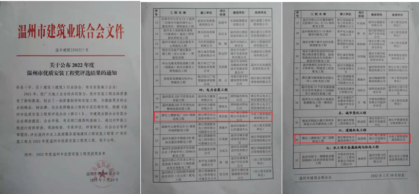 2022年度溫州市優(yōu)質(zhì)安裝工程獎