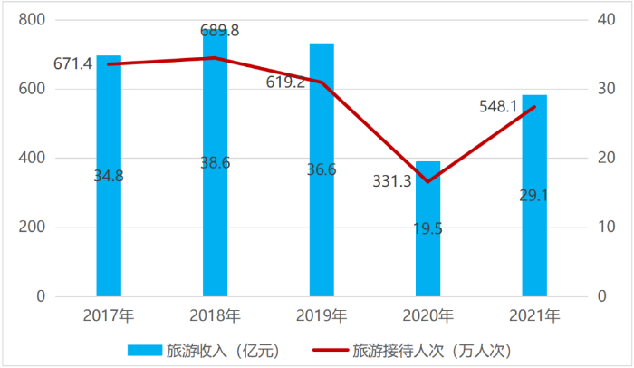 摘要:通過文獻研究、實地調研等方法客觀評估平谷區旅游經濟發展現狀、存在的問題,提出可通過設定旅游經濟量化指標、構建核心產品體系、加快農旅跨界融合、重構設計-營銷-宣傳體系等措施,促進平谷區旅游經濟實現更高水平、更優質發展。 關鍵詞:平谷區;旅游經濟;謀劃思路 一、引言 伴隨著新冠疫情進入“乙類乙管”常態化防控階段,旅游業迎來了全面復蘇的東風。平谷區作為北京市生態涵養區之一,是北京市民休閑游憩的理想地帶。北京市政府歷來高度重視生態涵養區旅游業等環境友好型綠色產業,先后出臺《北京市人民政府辦公廳關于健全生態保護補償機制的實施意見》等政策文件,明確支持發展生態旅游、精品民宿、森林康養、田園綜合體等旅游業態。目前,延慶區、懷柔區、密云區旅游業已發展成為當地戰略性支柱產業,旅游收入占地區生產總值比重均突破8%,其中延慶區占比高達13%。與以上三區相比,平谷區旅游經濟規模體量小,對經濟貢獻總體水平低,亟待尋求有效的發展路徑。本文系統梳理平谷區旅游資源特點、市場開發條件,分析平谷旅游業發展現狀及存在的主要問題等,旨在探索提振平谷區旅游經濟的有效措施,為平谷區旅游產業發展提供參考思路。 二、平谷區旅游經濟發展現狀研究 (一)全區產業結構情況 平谷區位于北京市東北部,與天津河北交界,屬于北京的遠郊,是北京市七大生態涵養區之一,生態保護是首要任務也是最根本功能定位。北京市政府自2014年以來,先后發布4版(2014版、2015版、2018版、2022版)產業發展禁限目錄,對平谷等生態涵養區產業發展方向提出明確要求。從4版產業禁限目錄內容來看,平谷區產業發展局促條件多、生態環保門檻要求高,發展范疇以低能耗、高附加值產業為主,但由于地處遠郊區產業集聚、政策環境、軟硬件配套往往跟不上,對高精尖類產業、人才、資金等要素吸引力薄弱。因此,發展高科技農業和現代服務業是平谷區立足現實情況和生態資源優勢的重要選擇。平谷區統計公報數據顯示,2018年-2022年的五年間,平谷區產業結構不斷優化,轉型升級成效顯著,第三產業已占據絕對優勢地位。2022年平谷區三次產業結構情況為3.3:22.6:74.1,第三產業占比遠高于第一產業和第二產業,與2018年相比,第三產業占比提升18個百分點,依托第三產業帶動和促進區域經濟發展趨勢效益日益凸顯。 數據來源:2018年-2021年平谷區統計年鑒,2022年平谷區國民經濟和社會發展統計公報。圖1 2018年-2022年平谷區三產占地區生產總值比重情況 摒除新冠疫情影響因素,以2017年-2019年數據為參考,平谷區旅游收入對第三產業的產值貢獻系數穩步維持在0.2左右,意味著旅游業產值每增加1個百分點,平谷區第三產業產值平均將提升0.2個百分點。此外,旅游業還是平谷區有效帶動城鄉居民就業的重要抓手,直接和間接帶動就業人數占平谷區總就業人口的11.7%,每100個就業人口中有11.7人是旅游業相關從業人口。刺激旅游市場消費活力、提振旅游經濟,對于夯實平谷區第三產業基礎性產業地位,乃至提升全區社會經濟發展水平至關重要。 數據來源:2018年-2022年平谷區統計年鑒,2022年北京文化和旅游統計概覽。圖2 2017年-2021年平谷區旅游收入及其他服務業占第三產業產值比重情況 (二)旅游業發展基本情況 疫情前三年(2017年-2019年),平谷區年均旅游收入為36.7億元,年均接待人次為660萬人次。2018年旅游業發展最好,旅游收入38.6億元,同比增長10.9%,接待人次689.8萬人次,同比增長2.7%。2019年因創建國家全域旅游示范區,關停部分旅游相關配套與服務設施,旅游經濟整體出現小幅回落情況。2020年為疫情暴發第一年,受行業大環境影響,旅游收入與接待人次出現大幅下浮,2021年開始回升,旅游收入和接待人次分別恢復至2019年的79.5%和88.5%,恢復速度優于北京市平均水平。 截止2023年,平谷區共有旅游景區13家,其中A級景區9 家(2A 景區 3 家、3A景區1家、4A 景區5家),星級賓館4家(二星1家、三星3家),社會旅館132家,旅行社及服務網點53家,市級鄉村旅游專業村36個,星級民俗旅游接待戶362 戶,精品民宿84戶,休閑農莊、采摘籬園、山水人家等新業態27戶。 平谷區旅游市場調查報告顯示,平谷區游客基本來自京津冀三地,以北京市民為主,占游客總人數的68%,河北省游客占15%,天津游客占12%。游客以中青年為主,17-35歲游客占比53%;城鎮游客占絕對主導地位,占比高達97%;游客的受教育程度普遍較高,69%的游客擁有本科和研究生及以上學歷;45%的游客選擇和朋友一起出游的人數,32%的游客選擇和家人一起出游,單獨出游和隨旅游團出游很少。55%的游客出游的交通方式為自駕出游;自然風景是大多數游客在選擇平谷區旅游時最看重的因素,城市居民希望遠離城市喧囂,更加偏愛和渴望親近郊區的自然山水。 數據來源:2017年-2021年北京市分區旅游數據統計報告。圖3 2017年-2021年平谷區旅游收入及接待人次情況 (三)平谷區旅游發展的優勢條件分析 1.產業政策利好促進旅游業發展 《平谷區分區規劃(國土空間規劃)(2017年-2035年)》和《平谷區國民經濟和社會發展第十四個五年規劃和二〇三五年遠景目標綱要》兩項上位規劃均明確提出平谷區將構建以農業科技創新、特色休閑旅游和綠色智慧商貿物流為主的綠色產業體系,意味著旅游業發展將比以往任何一個時期更容易獲取政府在土地、資金