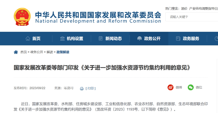 落實全面節約 堅持四水四定 進一步加強水資源節約集約利用 ——《關于進一步加強水資源節約集約利用的意見》專家解讀 加強水資源節約集約利用,推動全過程、全領域、全社會節水,是深入貫徹習近平生態文明思想、實施全面節約戰略的重要舉措,是緩解我國水資源供需矛盾、保障水安全的必然選擇。近日,國家發展改革委、水利部、住房城鄉建設部、工業和信息化部、農業農村部、自然資源部、生態環境部等部門聯合印發《關于進一步加強水資源節約集約利用的意見》(發改環資〔2023〕1193號,以下簡稱《意見》),強化“四水四定”,對推進水資源總量管理、科學配置、全面節約、循環利用,深入實施國家節水行動作出了新的部署,凸顯以下四大亮點。 01. 強調配取用排節水,強化全過程水資源節約 《意見》提出,在配置階段,加強用水總量和強度雙控,加快開展跨行政區江河流域水量分配,堅持先節水后調水,把節水作為受水區的根本出路;在取水階段,嚴格建設項目水資源論證,依法審批取水許可,整治違法取水問題;在用水階段,健全用水定額體系,做好用水定額動態評估和更新,落實計劃用水,提高各領域用水效率;在回用階段,推行非常規水源納入水資源統一配置,缺水城市積極拓展再生水利用領域和規模,具備條件的地方充分利用海水、礦井水、雨水等非常規水源。水資源節約集約利用工作貫穿全生命周期,涵蓋了資源配置階段的科學性、利用過程的先進性以及回用環節的可行性,旨在推行全過程管理和全鏈條節約。 02. 創新性提出生態景觀節水,強化全領域水資源節約 近年來,我國用水結構不斷優化,生態用水在用水總量中占比逐年增加,目前已超過居民生活用水的一半,因此生態景觀節水的重要性不可忽視。此外,隨著城市建設步伐的加快,城市景觀綠化面積迅速擴大,不恰當的綠化植被和人工水景消耗了大量的水資源。《意見》將生態景觀節水與農業農村、工業、城鎮三大傳統用水領域并列,補上了全領域節水的最后一塊拼圖,提出要堅持以水定綠,堅持山水林田湖草沙一體化保護和系統治理,統籌推進水源涵養、國土綠化、防沙治沙、濕地修復、水土保持;嚴控景觀用水,嚴禁違背自然規律挖湖造景,限制盲目擴大景觀和娛樂場地的水域面積,黃河流域嚴控新建親水公園。 03. 關注節水產業,明確節水增效雙提升新抓手 發展節水產業經濟新業態,協調推進“產業節水”與“節水產業”協同發展,是推動水資源高效利用與產業質量效益共同提升的有力抓手。我國一直把發展節水產業放在重要位置,《國家節水行動方案》中多次強調加快成果轉化和產業培育,《意見》專門成章并提出細化措施支持節水產業發展壯大,如加強技術研發應用,支持舉辦節水創新發展大會及高新技術成果展,推進技術產業化;推廣節水產品,實施水效標識,推行綠色產品政府采購,依法打擊水效虛標,推進節水信息化管理;推動節水服務產業發展,積極開展用水權交易,落實交易收益分配制度,在公共機構、高耗水行業、供水管網漏損控制等領域推廣合同節水管理。 04. 突出問題導向,聚焦短板弱項破解難點堵點 《意見》秉持問題導向,聚焦亟待解決的難點堵點,緊盯細分領域、重點區域和短板弱項,有針對性地提出了應對舉措。如我國在農業節水方面已有高效節水灌溉技術、農田水利工程等有力措施,但農業用水計量與監測設施建設仍是薄弱環節,《意見》提出,5萬畝以上大中型灌區渠首取水口要實現在線計量,大中型灌區應在產權分界點安裝計量設施,高標準農田和高效節水灌溉項目要配套實用易行的計量設施,進一步細化計量單元。又如,公共機構是用水大戶,也是節水示范引領的重要載體,近來會議場所“半瓶水”浪費現象備受關注,《意見》對此提出,公共機構率先垂范,提高公共機構用水計量信息化水平,在機關、學校、醫院等重點領域實施水效領跑者引領行動,深入推進節水型高校建設,倡導減少瓶裝飲用水浪費。 《意見》在全面節約戰略下,為進一步推進水資源節約集約利用深化了方向,細化了重點,實化了措施。下一步建議以《意見》為引領,各地區各部門形成工作合力統籌推進,加快落實,強化政策資金保障,以水資源可持續利用支撐我國實現高質量發展。 注:原文載自國家發展改革委微信客戶端 | |||||