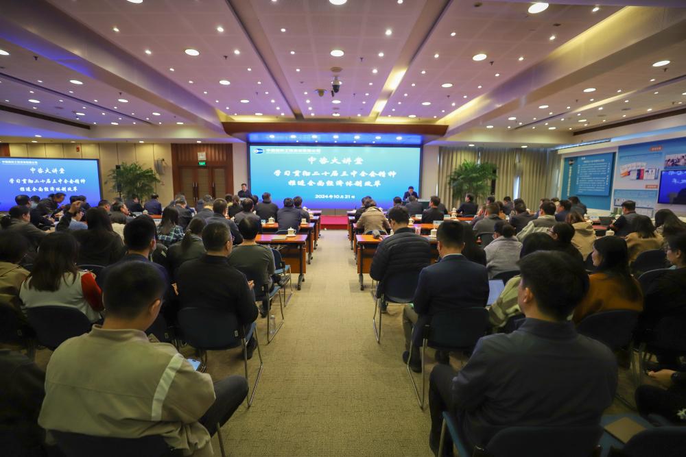 2024年10月21日下午,公司舉辦中咨大講堂之“學習貫徹黨的二十屆三中全會精神 推進全面經濟體制改革”講座暨黨委理論學習中心組學習(擴大)會。公司黨委書記、董事長茍護生主持講座。公司在京領導出席。 講座特邀中國宏觀經濟學會會長徐善長作專題授課。徐會長結合多年工作經驗和研究收獲,圍繞落實黨的二十屆三中全會部署要求,從堅持和落實“兩個毫不動搖”、構建全國統一大市場、完善市場經濟基礎制度等方面,全面系統闡釋了他關于構建高水平社會主義市場經濟體制的思考和體會。 徐會長指出,要堅持市場導向,充分發揮市場機制在資源配置中的決定性作用;要注重政府的經濟治理職能,為市場有效配置資源和經濟有序運行創造良好環境;要從提高創新力、競爭力、治理力、影響力、引領力等方面,加快建設更多世界一流企業。 他表示,構建高水平社會主義市場經濟體制是一個系統工程,需要全社會共同努力,政府、企業、社會各界都應積極參與,上下聯動形成合力,持續不斷推動改革發展。 徐會長還對《中共中央關于進一步全面深化改革、推進中國式現代化的決定》關于“高水平社會主義市場經濟體制是中國式現代化的重要保障”做出進一步詮釋,指出高質量發展是推進中國式現代化的首要任務,構建促進高質量發展的經濟體制為中國式現代化提供強大動力和制度保障。 交流環節,徐會長表示,中咨公司要進一步聚焦國家重大戰略、重大規劃和重大工程,充分發揮自身優勢,為黨中央科學決策和國家重大戰略部署提供有力支撐。 茍護生代表公司黨委對徐會長的精彩授課表示感謝。他指出,此次講座為中咨公司深入學習貫徹黨的二十屆三中全會精神、加快建設國家高端智庫和世界一流咨詢機構提供了有力指導。廣大干部職工要以高度的責任感、使命感更好地履職盡責,不斷加強政治理論學習和政策法規學習,提升能力素養和服務意識,用中咨軟實力支撐國家硬發展。公司也將繼續致力于搭建高質量學術交流平臺,為國家經濟發展和社會進步貢獻更多智慧和力量。 公司總部及所屬企業相關同志現場聆聽講座。 | |||||