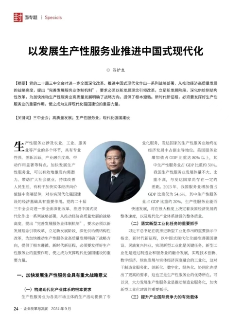 茍護生 | 以發展生產性服務業推進中國式現代化