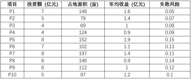 混合整數規劃 在項目群投資決策中的應用研究 劉義成 摘要:在高質量發展背景下,為支撐重大戰略落地、提升資金使用效益等,政府和企業通常會面臨多項目組合優化的投資決策問題。本文以多目標混合整數規劃為建模工具,構建一個以項目年均收益最大化為主要目標、失敗風險最小化為次要目標的項目群優化決策模型,通過引入ε-約束法將項目失敗風險作為約束條件納入模型體系,采用分支定界法對模型進行精確求解,并通過Python與CBC工具實現數值模擬。研究結果驗證了混合整數規劃模型在多目標與復雜資源約束條件下的應用價值,為政府或企業開展項目群投資決策提供了定量化分析借鑒。 關鍵詞:項目群投資;混合整數規劃;ε-約束法;分支定界法;優化決策 一、引言 當前,我國經濟和社會發展已進入高質量發展階段,在創新驅動發展、構建現代化產業體系、因地制宜發展新質生產力等重大戰略的引導下,政府、企業集團等市場主體的項目投資呈現多元化、集群化、系統化的發展趨勢,其中,項目群投資決策優化成為需要關注的熱點問題,也是固定資產投資決策管理的難點問題[1]。項目群是由若干具有內在聯系、資源共享或協同效應的投資項目組合,在當前高質量發展背景下,無論是政府開展的基礎設施投資、產業園區建設,還是大型企業集團開展戰略性投資,通常都會面臨多項目備選、多目標權衡、資源優化配置的復雜決策環境,如在資金、土地等資源限制下,風險與收益平衡的問題。 傳統的多項目投資決策問題,主要依賴專家咨詢法、層次分析法、凈現值法、多準則決策方法等,例如,M Kandakoglu等[2]研究不同多準則方法及其與數學規劃技術聯合在項目組合選擇中的應用;Hui Sun等[3]以BOT高速公路項目為對象,從財務角度計算了具有真實約束的最優投資組合,這些方法在處理當前創新驅動發展下的基礎設施規劃、產業集群建設等眾多項目備選的復雜場景時會顯得較為困難。 二、模型建立 目前,在多目標混合整數規劃建模研究方面,主要集中在供應鏈優化、能源管理等領域,如Teh等人[5]通過構建多目標混合整數線性規劃模型,研究棕櫚油生物質廢棄物轉化為高收率生物油涉及的年化總利潤和全球變暖潛力權衡問題。Jabarzadeh等[6]通過構建可持續水果閉環供應鏈網絡的多目標混合整數線性模型,同時考慮經濟、環境和社會指標,即最小化網絡總成本和不同網絡活動的二氧化碳排放量,同時最大化對需求的響應度同時納入模型,并采用加權Tchebycheff方法求解Pareto最優解。資源約束下的項目群多目標選擇優化問題,核心是在多重約束條件下,選擇哪些備選項目,在最大化投資收益的同時,確保整體風險在可容忍的限制范圍內。 (一)假設與參數定義 1.基本假設 (1)項目均為獨立單元,可被投資或不被投資; (2)已知年均收益、投資額、占地面積、失敗風險等指標參數; (3)項目失敗風險獨立,可簡單加和為整體風險水平; (4)項目間不考慮互斥或互補效應; (5)投資為單一決策,不考慮動態分期; (6)組合優化為一次求解,不考慮實時反饋機制。 2.參數定義 設項目集合 ,每個項目具有如下屬性變量: 表1 項目屬性變量表 (二)混合整數規劃模型構建 模型目標包括年均收益最大化的主目標和風險失敗風險最小化的次目標,數學表達式如下: 三、算法求解 混合整數規劃屬于NP-Hard類問題,主要有近似(啟發式)算法和精確算法兩類求解策略。近似(啟發式)算法是在問題規模較大或計算資源有限時,能夠快速找到接近最優的可行解,例如遺傳算法、模擬退火等,例如,張毅等[7]針對行調沖突的大型高鐵站到發線運用優化問題,構建到發線運用多目標優化模型,設計改進遺傳算法進行求解。精確算法即能夠找到全局最優解,例如分支定界法、分支切割法。本研究選擇使用精確算法,即分支定界法,求得真正意義上的最優投資組合。 1.ε約束法 ε約束法由Haimes等人在1971年提出,是一種經典的多目標優化策略,適用于目標函數可解耦的情況,核心思想是保留一個目標函數作為主目標,其余目標函數轉化為約束形式,并設置“ε”作為可接受上限或下限。例如,文獻[8-10]分別研究了基于模型的ε-約束法在車輛服務設施選址、考慮跑道復雜依賴關系的多目標飛機排序、震后初期多品種應急物資動態分配等領域的Pareto最優解集。通過引入ε約束法,本文構建的模型可以轉化為: 2.分支定界法 分支定界法(Branch and Bound)是一種系統性搜索算法,適用于解決混合整數規劃問題,例如,Luo Jianchao等[11]針對由放置定時Petri網建模的易死鎖柔性制造系統的調度問題,基于網模型的分支樹和高度允許的死鎖控制器,提出了一種隨時分支和約束(AB&B)算法,以最大限度地減少系統工期。利用分支定界法,求解的主要步驟包括:對原問題進行松弛求解獲得參考解,即忽略整數約束;若參考解為整數,則為可行解;若參考解非整數,則選擇一個非整數變量進行“0-1”分支;對兩個子問題分別繼續遞歸求解,并通過求上下界進行定界,以判斷是否繼續分支或剪枝。該方法保證在有限時間內搜索完所有可能組合,并返回全局最優解。 在本文構建的模型中,每個項目是否選擇由決策變量 四、算例分析 為檢驗上述模型建立和算法求解的有效性,運用PuLP調用內置分支定界法的CBC求解器,進行模擬計算。 1.算例構造 算例中的單個項目參數設置:投資強度,即項目